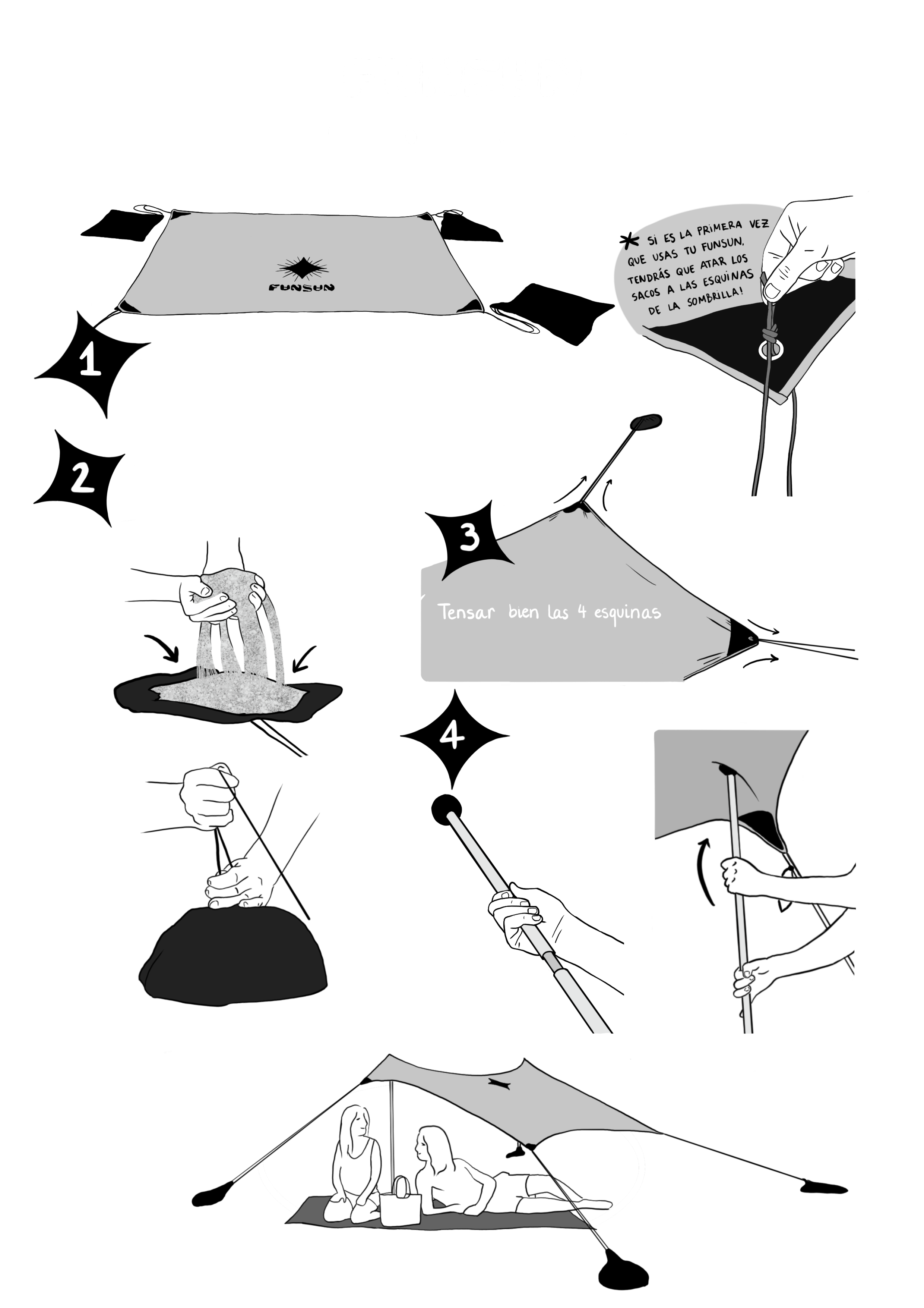 Montar el FunSun es súper fácil! Literalmente tardamos menos dos minutos. Compramos el color salmón y nos encanta, ya lo hemos usado varias veces y sigue como nuevo :)